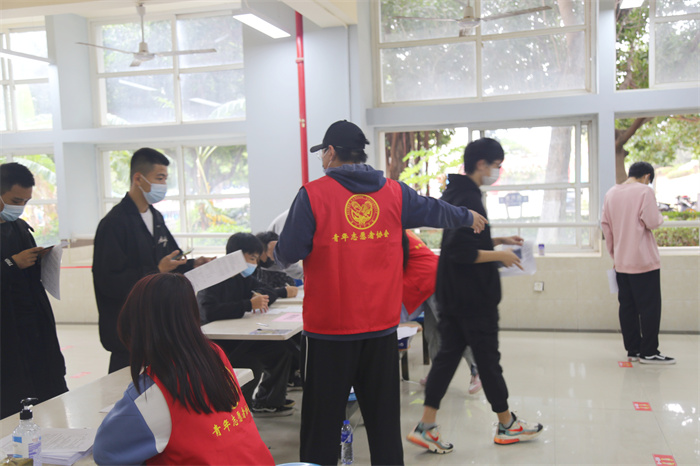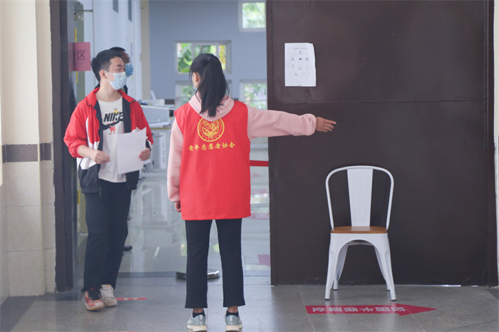 现场负责协调的志愿者们齐心协力、高效联动