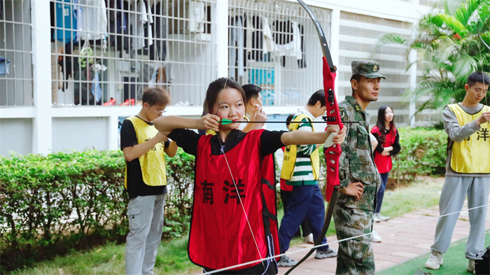 活动中,“破冰”“珠行万里”“呼吸的力量”“汉诺塔积木”“群龙传球”“面粉接力”“校园拍照打卡”“射箭”等团队项目,让新进教职工快速认识、熟络、新任,相互合作,为达成共同目标,凝聚进取。一群年轻的身影在校园中奔跑着,挥洒着汗水,洋溢着无忧无虑的笑容。
