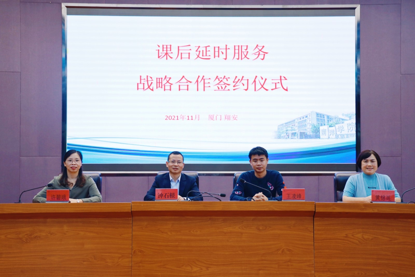 签约仪式上,翔安区青年教育促进会会长王凌峰、一附小校长黄锦英、三实小校长许碧娥先后作了发言。大家一致认为,“公益社团进校园”是落实国家“双减”政策,“高(校)小(学)”合作的创新形式。该项目既丰富了小学生的课后生活、为家长排忧解难,又为高校学生成长提供了平台,是一项利国利校利民的合作方式。希望各方今后加强沟通、完善管理,将此项活动不断优化,越办越好。早日使“公益社团进校园”的活动成为翔安的教育品牌项目,并不断得到推广。