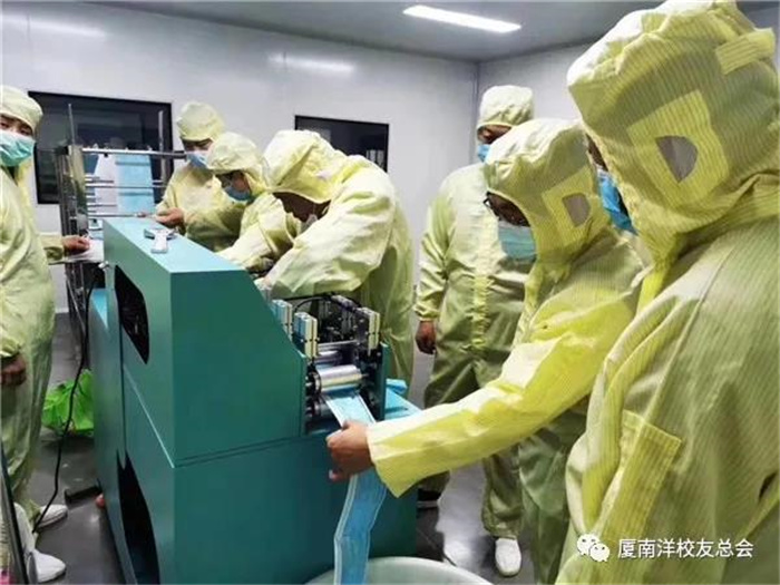 去年新冠肺炎疫情爆发初期,面对口罩紧缺的形势,校友曾明智的泉州市外星人新材料科技有限公司,积极攻关制造口罩机设备,研发团队核心成员更是放弃春节休假、通宵熬夜,全力以赴攻关研发,仅用了4天时间就研发出口罩机并投入生产使用。研发出的口罩机性能稳定,生产速度连续可调,生产效率高,每分钟可达200片,为支援新冠肺炎疫情防控作出了贡献。