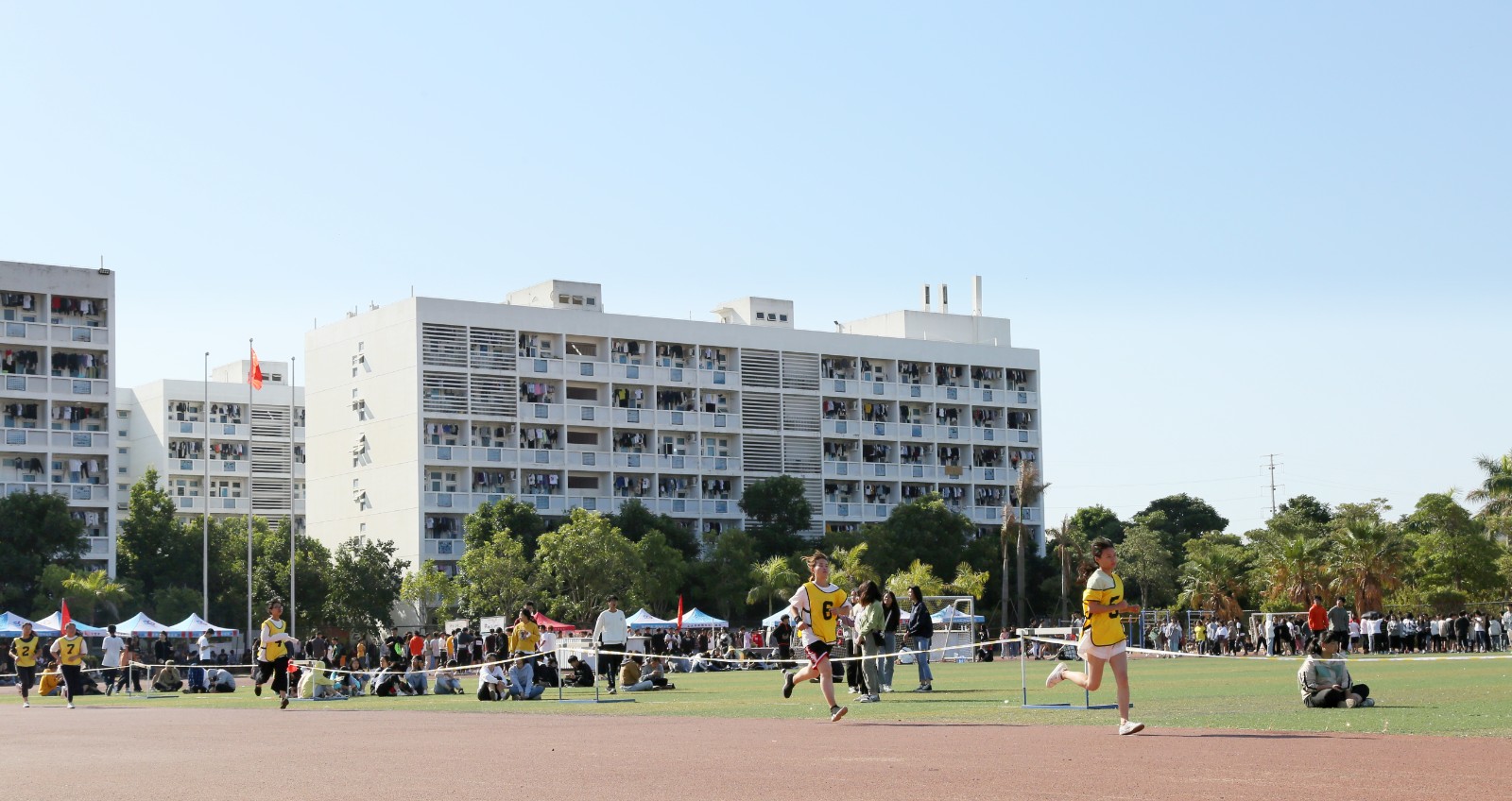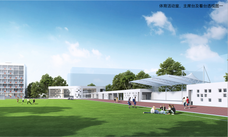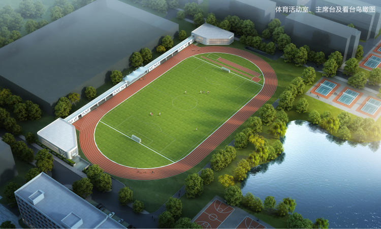 根据规划,新田径运动场分为地上、底下两层,总建筑面积12000㎡。地上建筑面积2000㎡,主要设有足球场、400米跑道、体育活动室、主席台及看台等;地下建筑面积10000 ㎡设有体育活动室、社团活动室、跑道、停车场等,避免了日晒雨淋,也大大地扩充了学校的运动空间,更好地满足了广大师生的运动健身需求。