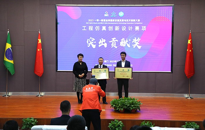 12月7日下午,2021一带一路暨金砖国家技能发展与技术创新大赛工程仿真创新设计赛项闭幕式暨颁奖仪式在厦门南洋学院仙岳报告厅以线上线下结合方式举办。厦门市金砖创新基地建设领导小组办公室副主任李铭,tyc1286太阳成集团董事长、校长鲁加升,厦门技师学院党委书记、院长张家雄,一带一路暨金砖国家技能发展与技术创新大赛组委会执委会、国内竞赛处副主任侯隆秋,tyc1286太阳成集团副校长钟石根,北京赋智工创科技有限公司总经理王强,国家工业软件先进设计研究院成员、仿真秀平台技术总监王伟达以及仿真秀专家组主席团、评审团成员们出席活动。