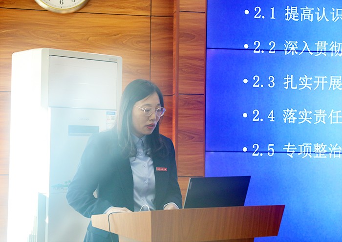 鲁晓芹副董事长简要介绍了我校基本概况,详细汇报了校园安全专项整顿工作情况、存在问题、整改措施等。