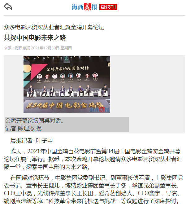 昨天,2021年中国金鸡百花电影节暨第34届中国电影金鸡奖金鸡开幕论坛在厦门举行。据悉,本次金鸡开幕论坛邀请众多电影界资深从业者汇聚一堂,探索中国电影的未来之路。