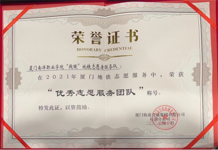 座谈会上,厦门地铁与我校签署厦门地铁志愿者团体共建协议,并授予我校“微暖”地铁志愿者服务队“优秀志愿服务团队”的称号。