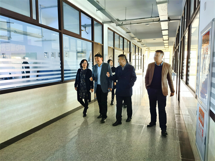 1月19日,哈尔滨传媒职业学院理事长、院长宫波一行来我校参观访问。校领导施水成、蓝德森热情接待。
