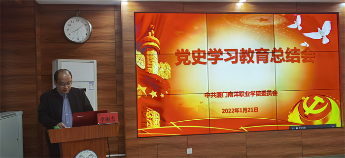 党委书记施水成在总结讲话中指出,召开学校党史学习教育总结会议主要任务是认真学习贯彻习近平总书记关于党史和党史学习教育的重要指示精神和中央、全省、全市党史学习教育总结会精神,认真学习贯彻党的十九届六中全会精神,巩固深化党史学习教育成果,引导广大党员以史为鉴、开创未来、踔厉奋发、真抓实干,助力学校高质量发展,以优异成绩迎接党的二十大胜利召开。他强调,2022年,要继续沿着习近平总书记指引的方向奋力前进, 以更高质量的党建引领民办高校高质量发展,以最优的工作实绩迎接党的二十大胜利召开。并提出四点意见。一是提高政治站位,把思想和行动统一到习近平总书记重要讲话精神上来;二是认真总结提升,不断巩固拓展党史学习教育成果;三是踔厉奋发、真抓实干,助力学校高质量发展;四是研究推进习近平总书记致厦门经济特区建设40周年贺信重要精神大学习大讨论活动,部署推动南洋事业繁荣发展、强化党内法规、做好来年工作和巩固拓展党史学习教育成果等。