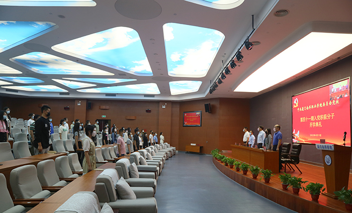 典礼上,教育学院党总支学生党支部翁倩文(21级学前教育9班)代表新学员发言,她表示将严格要求自己,提高思想政治觉悟,将用实际行动践行初心,做一名有理想、有本领、有担当的青年,争取早日在思想上、组织上加入党组织。