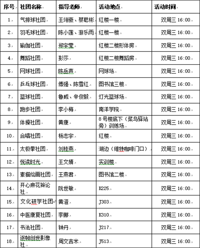 18个文体社团项目