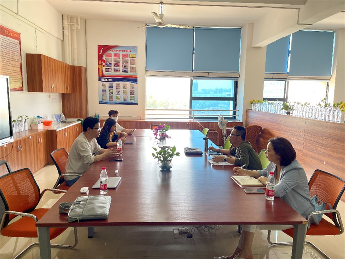 我校项目负责方负责人及部分学生代表与抖音电商直播基地的运营商厦门市星购信息科技有限公司的副总经理曹昌茂和GR邓建新及母公司思凯文化的运营总监杨敬宝,再次就直播间下一步的运营推进和专业人才培养等工作深入展开了校企生三方会谈。