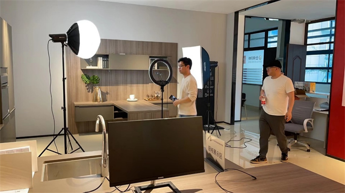 该直播间是基于原有的金牌橱柜实训室基础上进行的改造提升,对接厦门抖音电商的家居品类项目,通过专业直播设备和供应链产品的持续导入,使得直播间具有情境化的运营功能和专业性的实践教学能力。