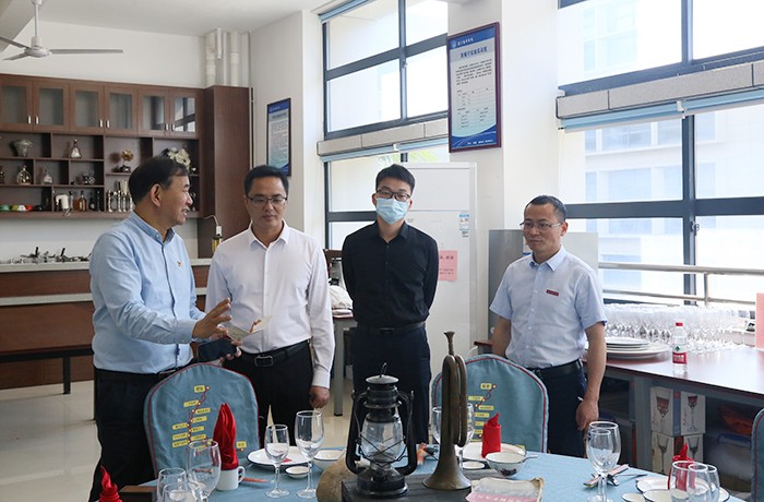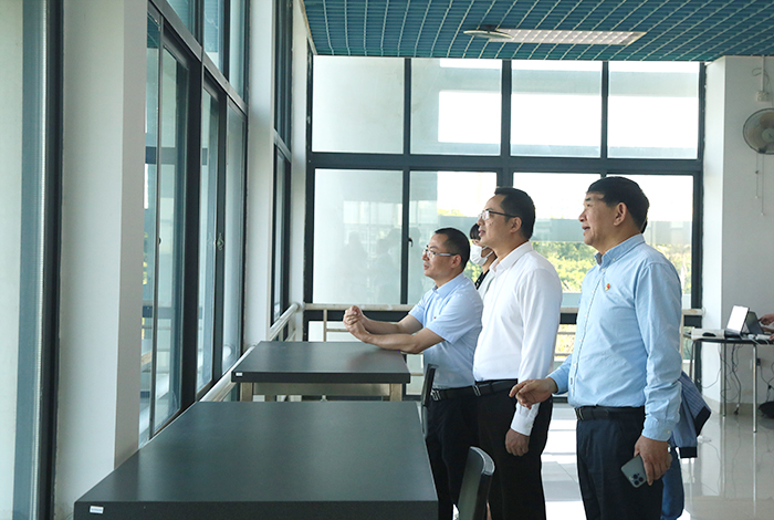 座谈会前,陈荣煌副县长一行先后参观了实训楼、运动场、图书馆等,对我校先进的实验实训设备和产教深度融合、校企协同育人理念给予高度评价。