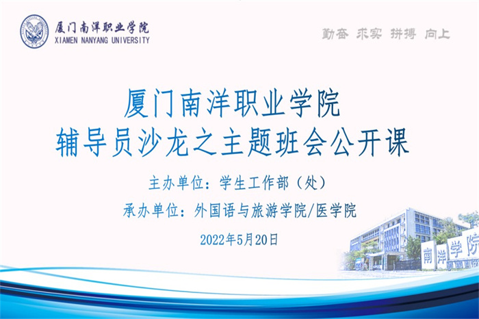 5月20日,辅导员沙龙之《做自己的首席安全官》主题班会公开课在教学楼A301召开。校领导施水成、鲁晓芹、许智坚、蓝德森出席,相关负责人以及全体辅导员、学生代表参加。