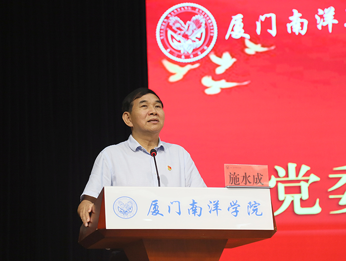 老师们、同学们!国家已进入了新时代,党和国家事业发展对职业教育的需要,对技术技能人才的需要,比以往任何时候都更为迫切,作为社会主义教育事业的重要组成部分,我们厦门南洋学院要始终牢记为党育人、为国育才的职责使命。希望通过本次思想政治会议,全体教职工能够进一步坚守职业教育本色,提高人才培养质量,进一步加强内涵建设,让全校师生一起行动起来,以实际行动迎接党的二十大胜利召开!