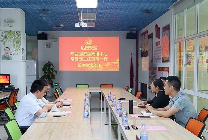 6月30日,陕西国资委教培中心常务副主任黄博,陕西电子信息教育投资集团有限公司董事长、总经理孙芙蓉,副总经理、长岭技工学校校长石磊一行来我校参观访问。校领导鲁晓芹、蓝德森,培训中心主任游陈盛、继续教育学院主任邱茂田热情接待。