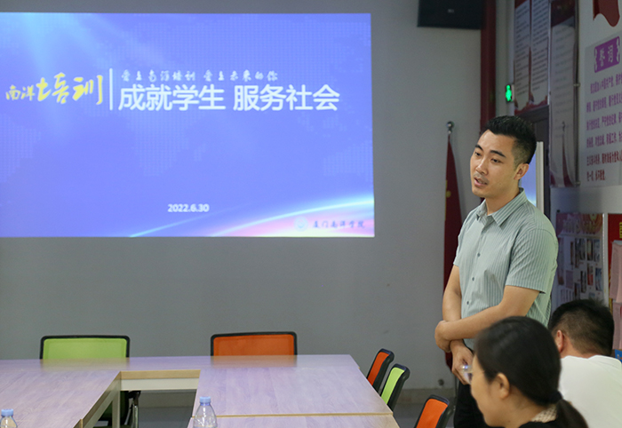 黄博副主任对我校在乡村振兴、校园培训等方面的工作十分赞赏,对学校近年来的高速发展给予充分肯定。他认为,南洋学院为全国高职人才的培养做出了突出贡献,希望双方未来可以互相支持、优势互补、资源互用。