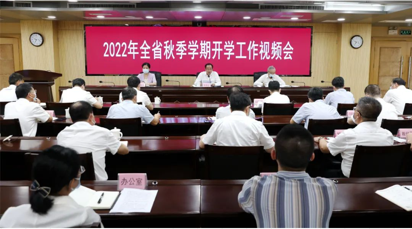 副省长李德金指出,全省各地各校要深入贯彻习近平总书记重要讲话重要指示批示精神,全面落实党中央、国务院决策部署,按照“疫情要防住、经济要稳住、发展要安全”的重要要求,高效统筹疫情防控和教育改革发展,确保学校开学平稳有序、师生返校安全顺利。他要求,要周密部署安排师生返校,“一地一案”“一校一策”细化开学返校方案,全面摸排师生员工健康情况,严格落实返校健康管理要求,因地因校制宜组织“错区域、错层次、错时、错峰”开学。要科学精准抓好常态化疫情防控,动态优化疫情防控方案和应急处置预案,坚持“日报告”“零报告”等制度,坚决防止简单化、一刀切和层层加码等现象。要规范各级各类学校招生秩序,强化宿舍、教室、食堂、实验室等校园重点场所安全隐患排查,加强学生安全教育和心理辅导,构建安全舒心的校园环境。要深化落实“双减”工作,严格学校管理、教师管理、学生管理,切实提升学校教学质量,上好开学第一课,促进青少年身心健康成长。组织开展教师节系列活动,走访慰问优秀教师、困难教师、乡村教师,营造尊师重教良好氛围。要压紧压实“四方责任”,开展教育重点领域督导检查,落实落细各项工作,以实际行动迎接党的二十大胜利召开。