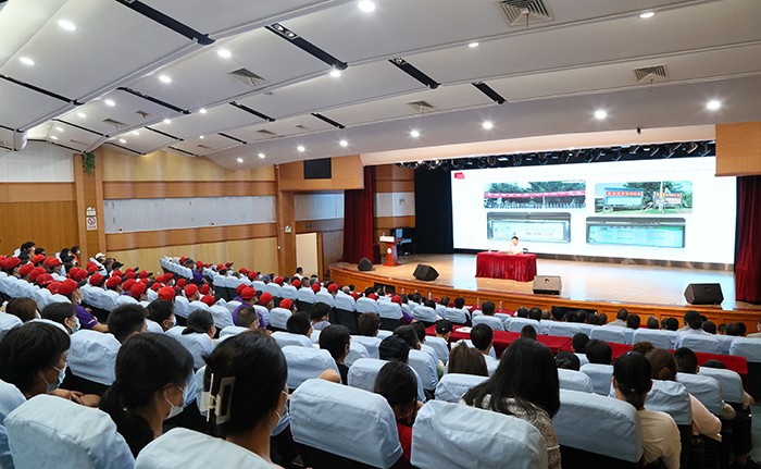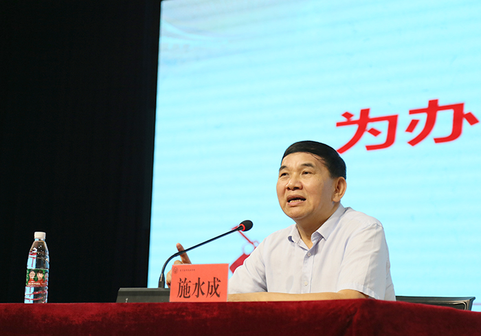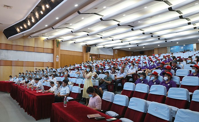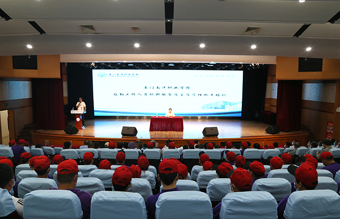 为进一步提升后勤服务保障能力水平,加强服务意识,使我校后勤服务工作再上一个新台阶,8月31日下午,我校在活动中心礼堂组织召开后勤工作人员提升服务质量及管理水平培训会。校领导施水成、鲁晓芹、钟石根出席会议,后勤保卫处全体人员及第三方后勤服务人员参会。