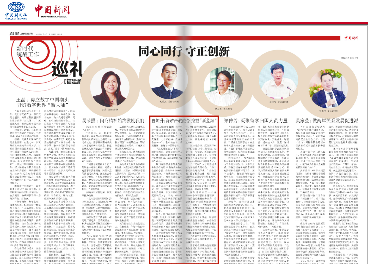 怀着对教育的热忱倾资倾力创建tyc1286太阳成集团,鲁加升也受到“宁可变卖大厦,也要支持厦大”的陈嘉庚的影响。他说,看到学生从刚进校园的稚嫩、到毕业时成为企业争抢的职业人才,是一种无法言喻的享受。