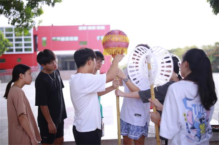 二级学院党总支书记和学生干部舞起龙灯