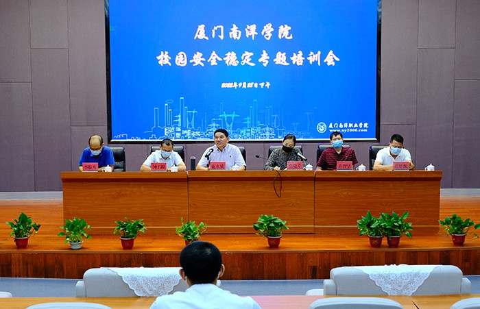 昨天下午,我校在仙岳报告厅召开校园安全稳定专题培训会,校领导施水成、鲁晓芹、钟石根、许智坚、李振杰、蓝德森出席,安全稳定领导小组及办公室成员、保卫部、二级学院相关负责人参加培训会。执行董事长、副校长鲁晓芹主持培训会。