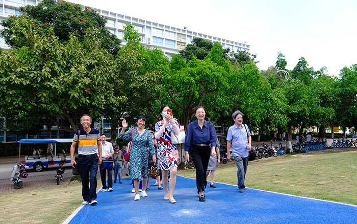 座谈会后,校领导陪同老教师们浏览了整个校园并一同共进午餐。