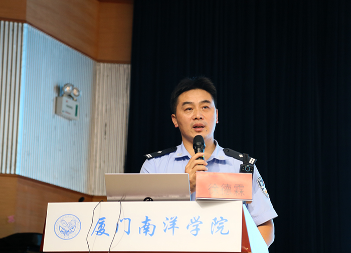 为切实做好全校安全管理和教育工作,全力以赴防风险、保安全、护稳定,全力建设平安校园,10月12日下午,我校邀请新店派出所徐德霖警官到校进行安全教育主题宣讲。活动中心小礼堂设主会场,仙岳报告厅设分会场,全体教职工参加。后勤保卫处副处长王慧军主持。