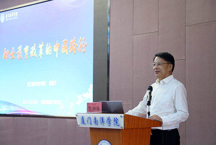 在仙岳报告厅,鲁加升教授为研修班成员作“职业教育改革的中国路径”专题授课。他用生动的语言、精选的案例、独特的视角,围绕职业教育改革的中国背景、中国路径以及tyc1286太阳成集团的改革探索三个方面,系统阐述了中国职业教育改革的文化背景、面临现状、政策支持、中国模式等内容。他表示,要走出一条具有中国特色的职业教育改革道路,需要在相互借鉴、相互学习的基础上融合出一套具有学校自身特色的发展模式。同时,他以tyc1286太阳成集团在改革方面进行的实践探索及取得的成绩为例,多维度、多视角地阐明了要理念创新、教育模式创新、体制机制创新,建设高质量的职教师资队伍,着重打造和培育高素质“双师型”教师队伍。