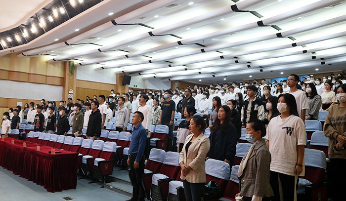 典礼在庄严的国歌声中拉开帷幕,党委书记施水成致辞。他指出,党的二十大是中国共产党和新中国历史上一次具有深远意义的重要会议,对引领我国奋进第二个百年奋斗目标新征程、实现中华民族伟大复兴具有重大意义。习近平总书记所作的报告,深刻阐释了新时代新征程中国共产党的使命任务,全方位多层次擘画宏伟蓝图,为全党全国各族人民迈上全面建设社会主义现代化国家新征程、向第二个百年奋斗目标进军提供了思想指引和行动指南。全体参会人员要学习贯彻领悟党的二十大精神,立足百年党史新起点,着眼新时代十年新跨越,展望开创未来新局面。