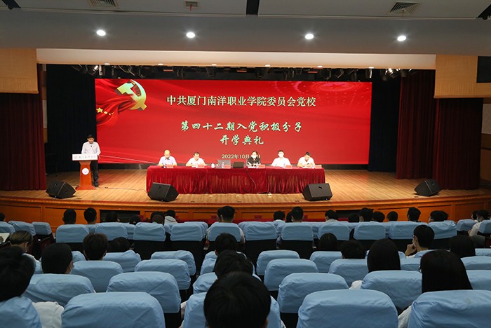 10月19日下午,南洋职业学院党校第42期入党积极分子培训班开学典礼在活动中心礼堂隆重举行。党委书记施水成,党委委员鲁晓芹、钟石根、许智坚、李振杰、蓝德森出席典礼;全体党务干部、第42期入党积极分子参加典礼。党委委员、党校副校长李振杰主持典礼。
