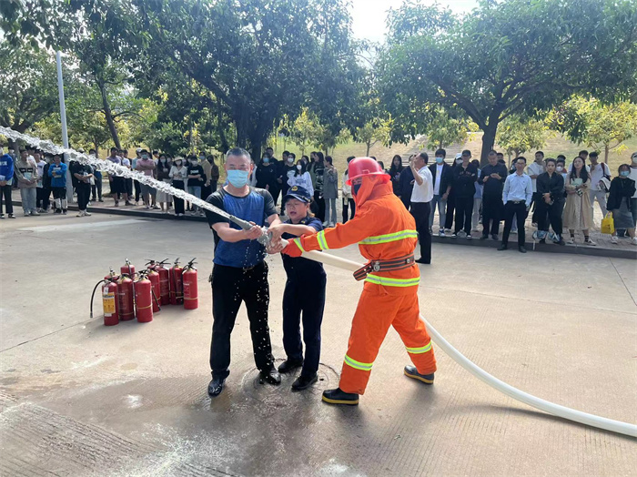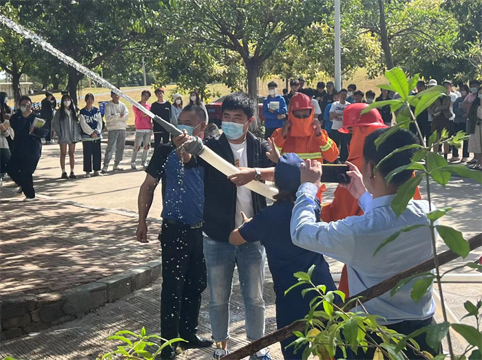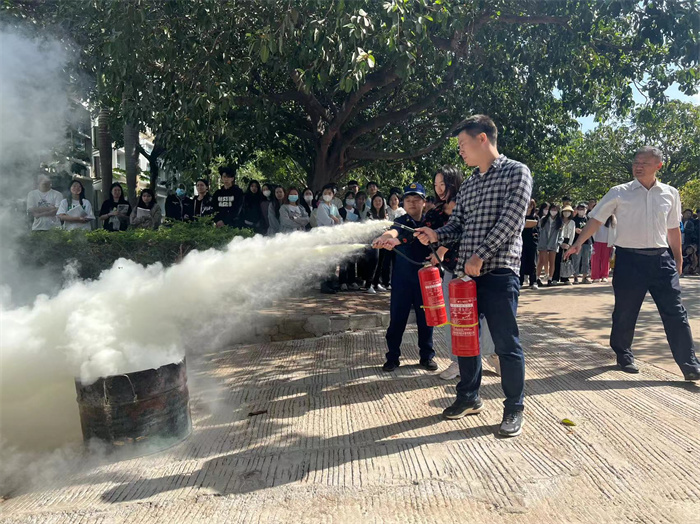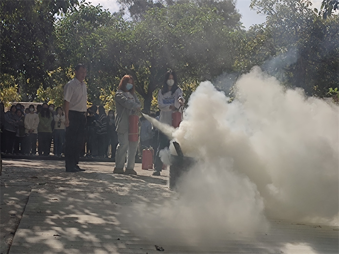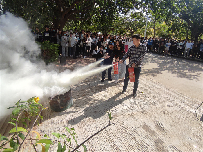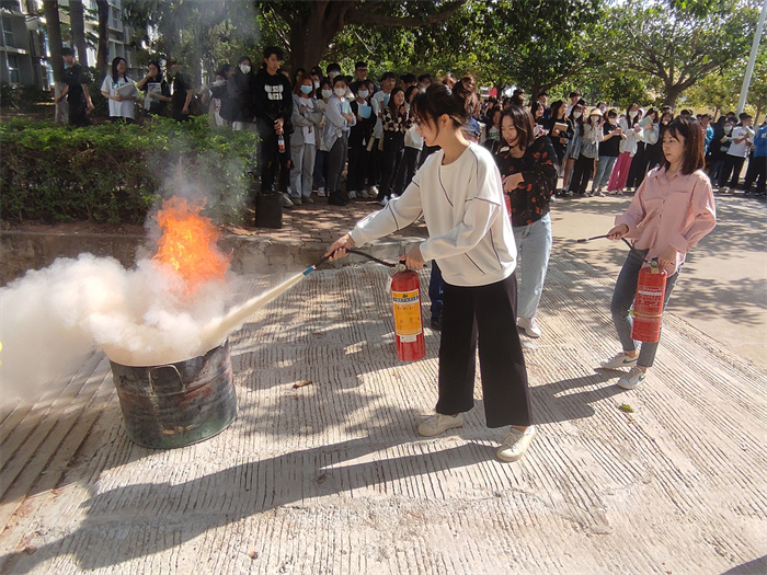 培训中,童玉馨从“防火”“灭火”“逃生”三个方面,用通俗易懂的语言向师生讲解如何预防校园火灾、如何查找身边火灾隐患、发生火灾时如何正确报警、如何自救逃生以及日常生活中安全用电、用火、用气等消防基础知识,并现场演示了灭火器、灭火毯及消火栓水带的使用方法,向师生们传授使用灭火器扑救火灾的操作要领。