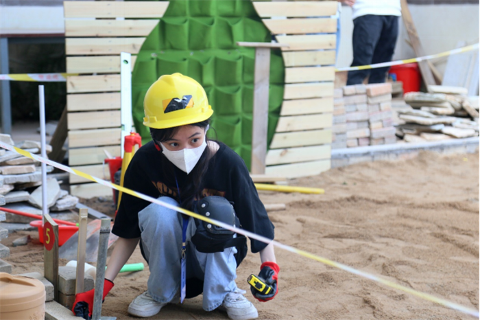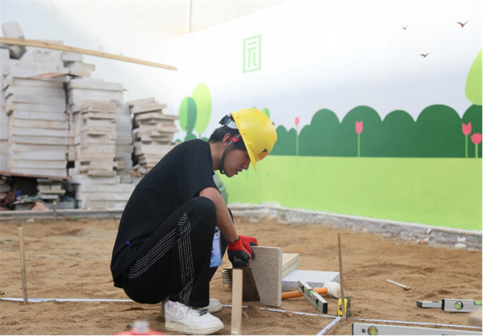 园艺赛项要求参赛队伍在规定的时间内将木作、砌筑、铺装、水景营造、植物造景等模块有机结合在一起组成一件园艺作品。比赛过程中,选手们全神贯注、争分夺秒,以饱满的热情、昂扬的斗志投入其中,以专业的知识、娴熟的技能积极应对比赛,营造出“比、学、赶、超”的竞技氛围。