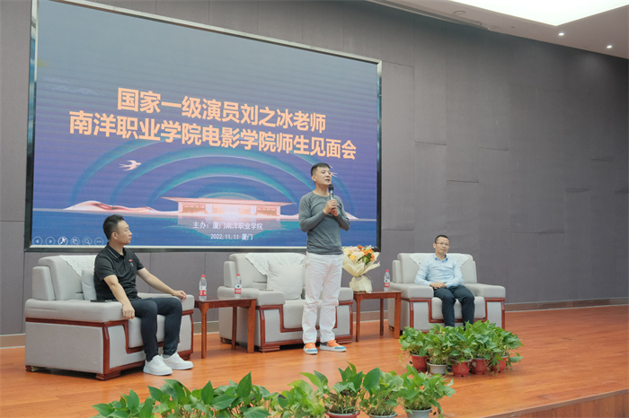 11月11日上午,2022年第三十五届中国电影金鸡奖创投单元评委、国内著名导演张力,八一厂演员剧团团长、国家一级演员刘之冰到校与电影学院师生交流作品创投、演员能力塑造等话题。
