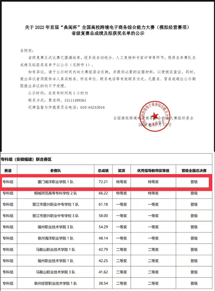 据悉,此次比赛专科组共257组队伍参加省级复赛,旨在为推动跨境电商专业人才培养,向跨境电商行业输送具有创新能力和实践能力的高端人才,提升高校毕业生的就业竞争力,全面推动行业发展及人才培养进程。全国总决赛将于12月11日正式开始。