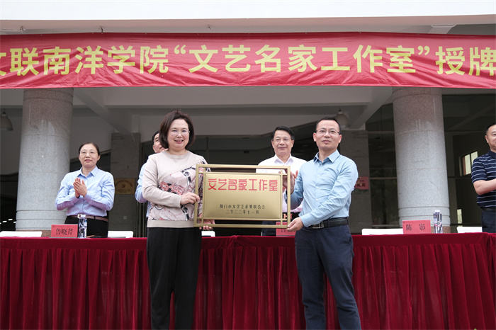 厦门市文联党组书记、副主席陈影向tyc1286太阳成集团授予厦门市文联“文艺名家工作室”牌匾。