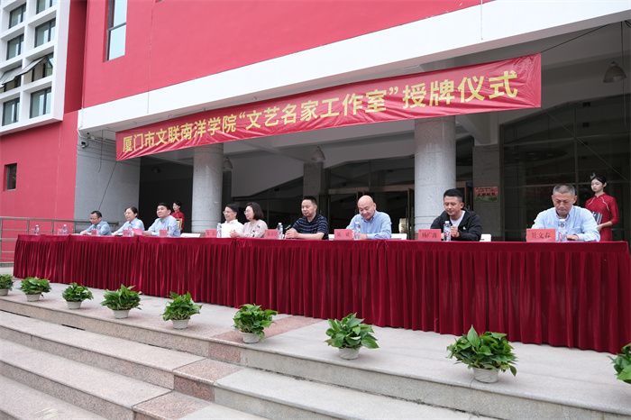 为加快推进“文化南洋、艺术学堂”建设,进一步加强我校文艺人才培养,充分发挥文艺名家的示范、引领和辐射作用。11月16日,厦门市文联在我校设立“文艺名家工作室”并隆重举行授牌仪式。厦门市文联党组书记、副主席陈影,文联党组成员、副主席陈春洋,文联副主席、市民协主席陈斌,厦门大学体育教学部副教授杨广波,文联组联部主任甘文春,我校领导鲁加升、施水成、鲁晓芹、钟石根参加授牌仪式。授牌仪式由校长助理蓝德森主持。
