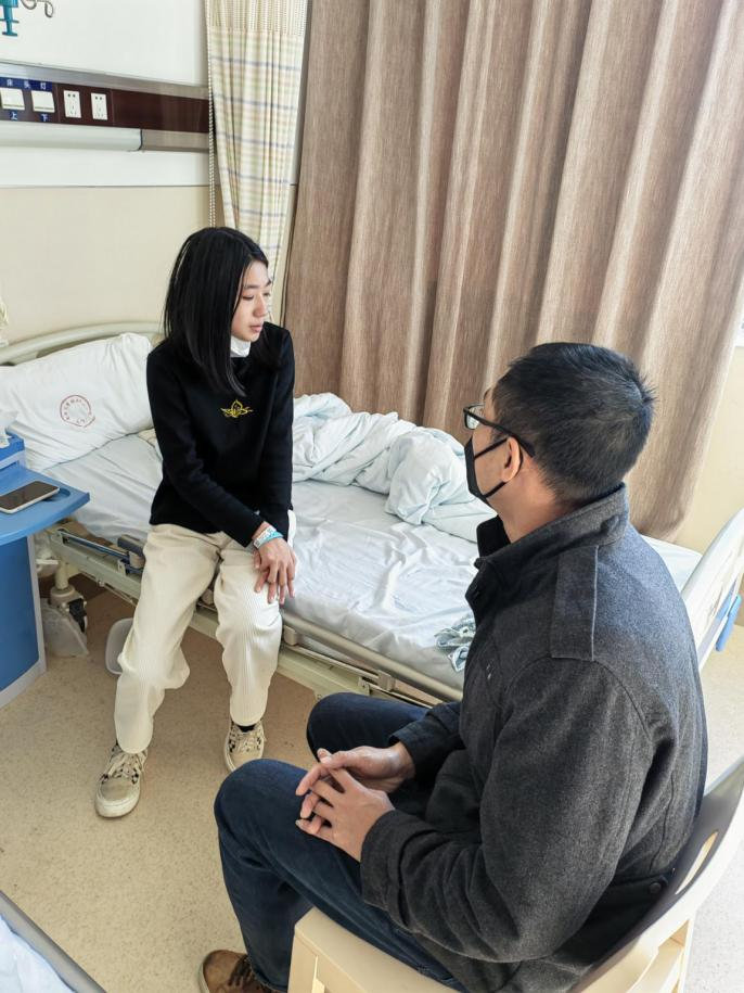 李舒欢同学对来自学校的关心、支持和帮助表示衷心的感谢。她表示会以更加积极心态进行治疗,争取早日康复回校,学习成才,回报大家的关爱。