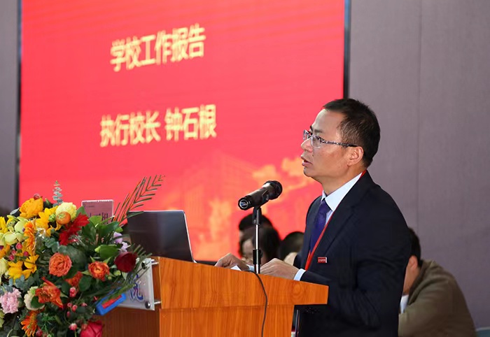 执行校长钟石根以《锚定目标 真抓实干 奋力开创“生态文明校园”建设新局面》为题作工作报告,回顾了党建工作全面加强、人才培养卓有成效、专业布局更加优化、师资队伍不断壮大、科学研究成效显著、社会服务持续加强、国际交流稳步推进、办学条件大幅改善、校园文化精彩纷呈等2022年九项工作。他围绕抓学习,提高思想政治站位;抓人才,加快创新团队建设;抓科研,激发科技创新活力;抓教学,提升人才培养质量;抓开源,持续增强办学经费;抓合作,深化对外开放交流;抓基建,持续改善办学条件等2023年七项重点工作进行了全面部署。