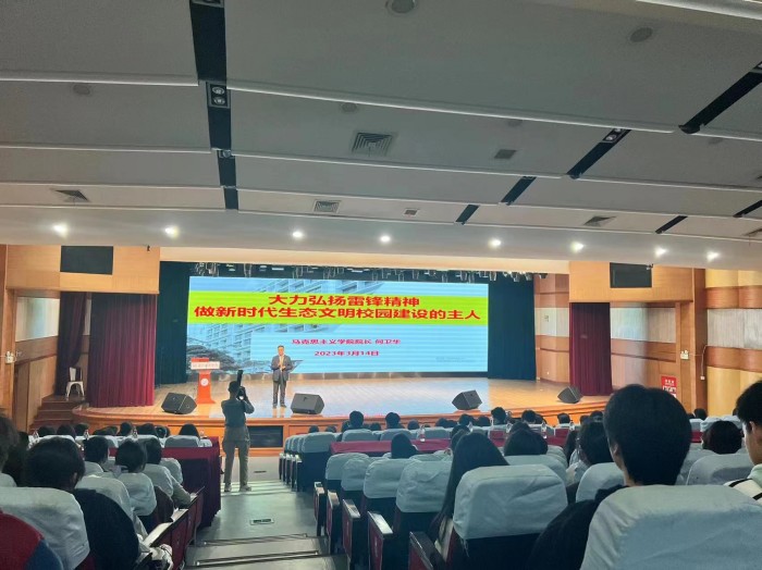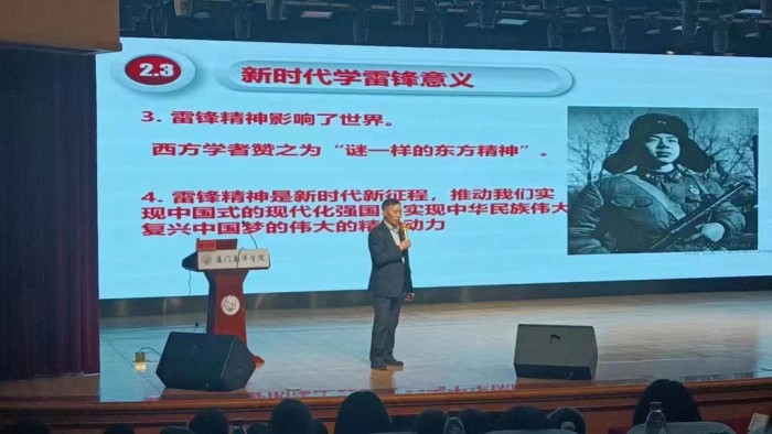 马克思主义学院/人文社科学院院长何卫华从“雷锋的简介”“雷锋精神内涵与意义”“新时代学雷锋”三部分展开讲授,强调新时代青年应加强政治学习,坚定理想信念、注重思想锻炼,提升道德品质、为他人着想,爱心助人、全面学习,做好准备、在生态文明校园建设上贡献“主人”作为;并分享自己亲身践行“雷锋精神”的故事,让在场师生全面、深入地领悟新时代学雷锋的意义。