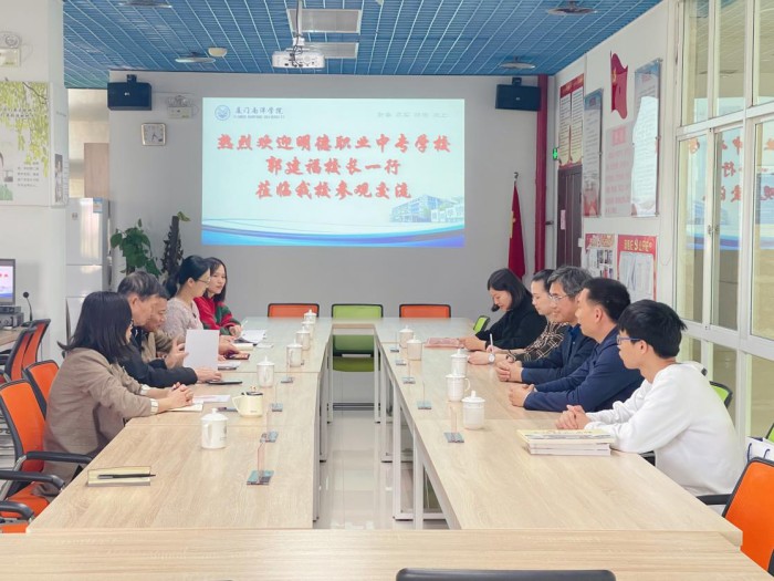 3月17日,明德职业中专学校校长郭建福一行人来我校交流学习,我校校领导许智坚、蓝德森及相关人员接待。