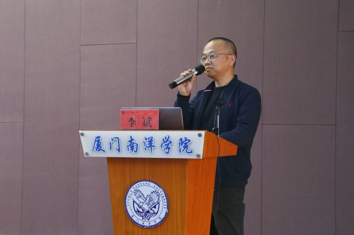 在主旨演讲中,北京航空航天大学厦门校友会会长、厦门集恩图造信息科技股份有限公司总经理李斌结合自身求学经历,勉励在场学生紧扣时代和社会的发展需求,形成“你追我赶”学习氛围,充分利用大学时光,认真踏实学好本领。