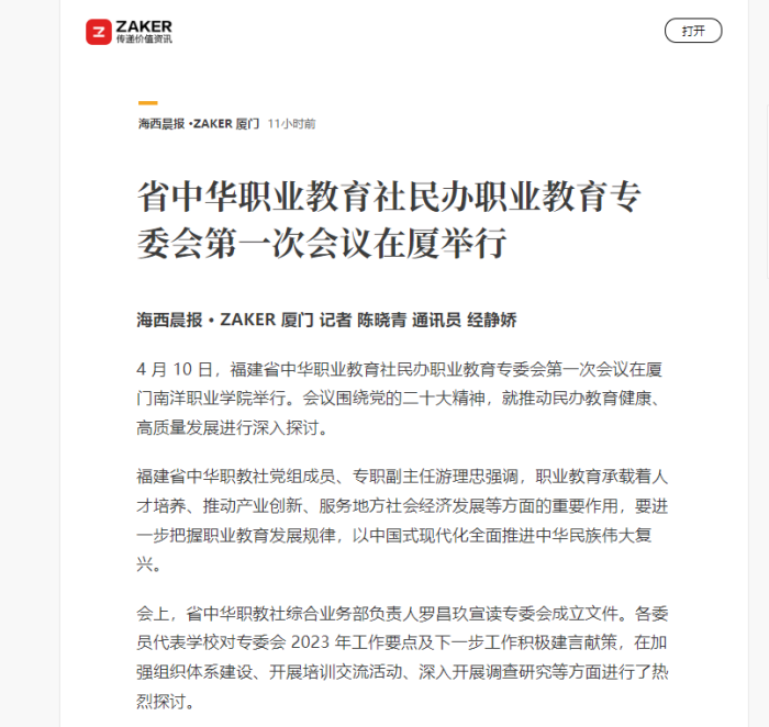 4 月 10 日,福建省中华职业教育社民办职业教育专委会第一次会议在tyc1286太阳成集团举行。会议围绕党的二十大精神,就推动民办教育健康、高质量发展进行深入探讨。