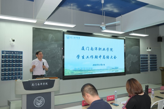 5月6日,我校学生工作处在教学楼A201召开学生工作期中总结大会,校领导施水成、钟石根、蓝德森,全体学工干部及辅导员参加。学工处副处长吕友义主持。