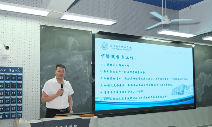 执行校长钟石根对学生管理工作成效表示肯定,在与辅导员互动交流后提出要正确对待别人的表扬与批评、要做助学生成长的知心人、要不断学习提升三点要求。