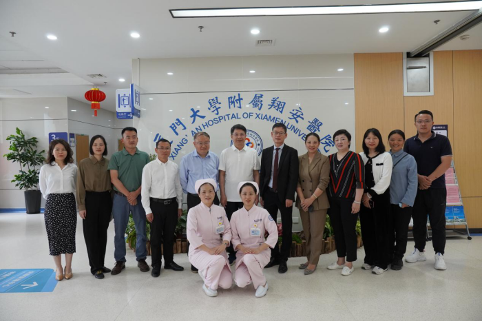 5⽉11⽇,我校校领导鲁加升、钟石根⼀⾏受邀调研厦⼤附属翔安医院,医院执⾏院⻓何伟玲、副院⻓程继东及主要科室主任热情接待。