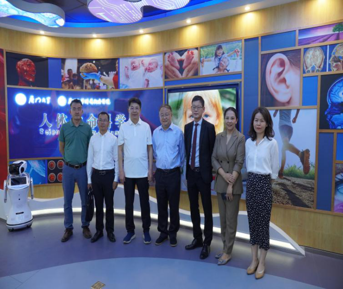 会前,程继东副院长带领鲁加升教授一行参观了医院的⻔诊中⼼、⼈体⽣命科学馆和国家临床教学培训示范中⼼。