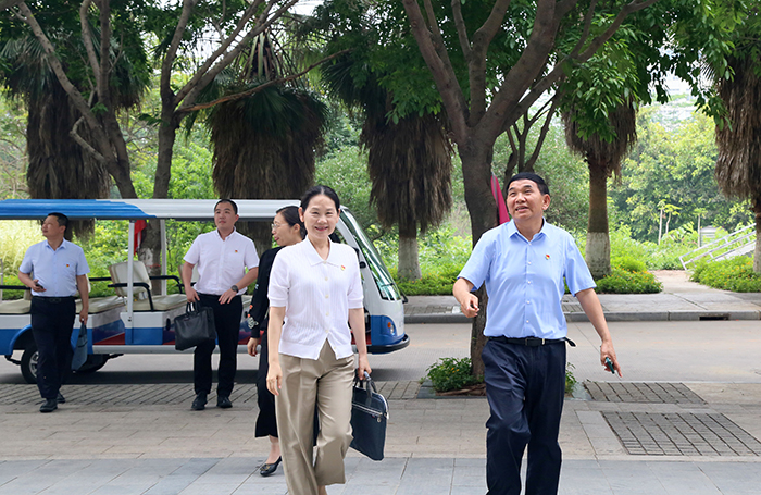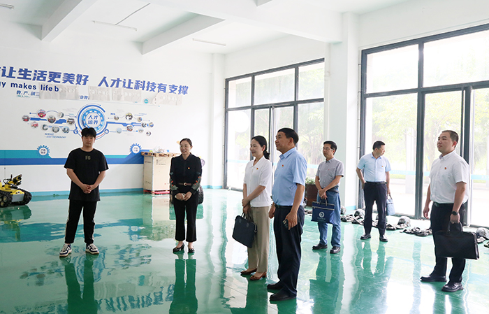 座谈前,学校党委委员带领市委主题教育第八巡回指导组一行参观了我校学生作品展厅、实训楼、琴房等地。