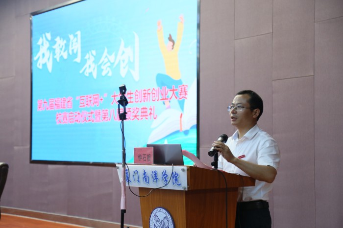 6月2日下午,我校举行第九届福建省互联网+大学生创新创业大赛校赛启动仪式暨第八届颁奖典礼。厦门大学博士生导师、“互联网+”大赛国赛评委、国家英才计划导师、福建省高层次人才孙海信,福建省人社厅创业导师、厦门市创业创新协会执行会长柯明国,我校校领导钟石根、许智坚及各二级学院师生代表参加,校长助理蓝德森主持。
