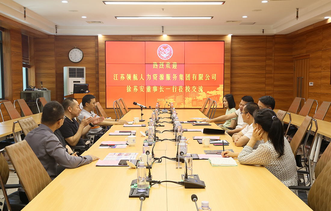 6月28日,江苏领航人力资源服务集团有限公司董事长徐苏安一行来我校走访交流,我校创办人鲁加升教授,校领导钟石根、蓝德森及相关部门负责人陪同。