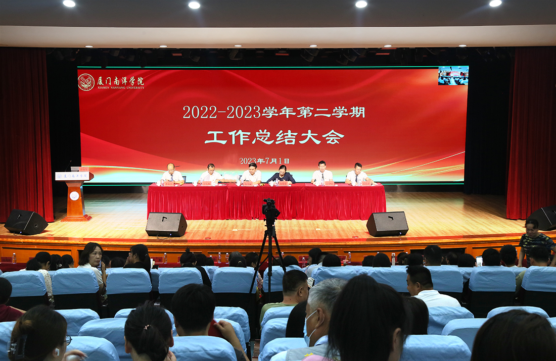 7月1日,我校召开2022-2023学年第二学期工作总结大会在学生活动中心小礼堂举行。校领导施水成、鲁晓芹、钟石根、许智坚、李振杰、蓝德森,全体教职工参加,副校长许智坚主持。